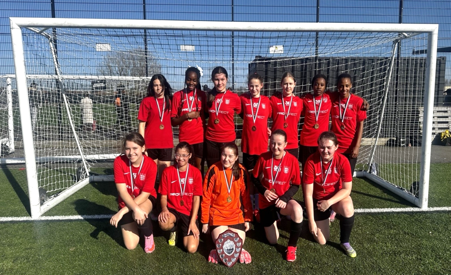 The Under-13 girls’ football team produced a stunning performance to clinch the Borough Championship, defeating Eastbrook School in a dominant 9–1 final.